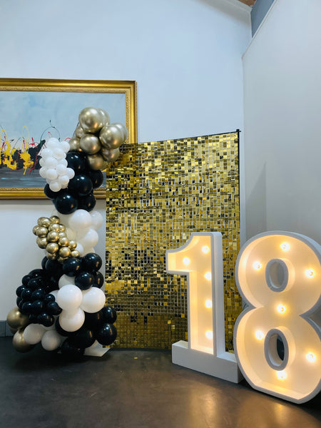 Una parete luminosa da 1,20 metri, la nostra cascata di palloncini e l'immancabile numero luminoso... manca qualcosa??