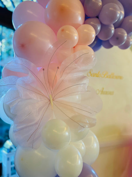 Pannello personalizzato, cascata palloncini e sagome farfalla