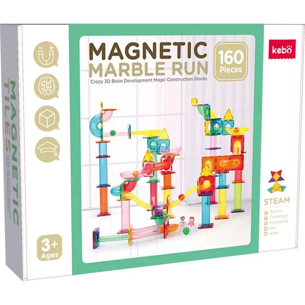 Costruisci piste dinamiche per le biglie con il set Kebo “Pista delle Biglie Magnetica” da 160 pezzi! Include piastrelle magnetiche, tubi e connettori per creazioni 3D complesse. Ideale per lo sviluppo STEM, stimola logica, fisica e creatività. Sicuro, colorato e compatibile con altri set magnetici. Perfetto per bambini dai 3 anni in su.