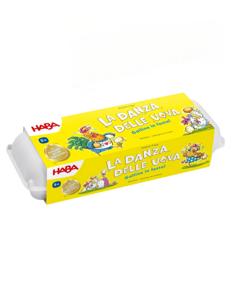 Diventa campione della Danza delle Uova, un gioco per 2-4 giocatori (5+ anni, circa 10 minuti) dove devi raccogliere più uova di gomma che saltano prima che cada l’uovo di legno. La confezione include uova, dadi e istruzioni. Un classico divertente per tutta la famiglia con un nuovo design.